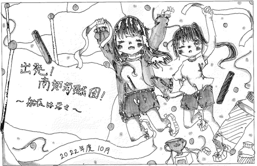2学期スタート以降、準備や練習を重ねてきた南郊祭が、いよいよ目前に迫ってきました。明日10月4日(火)が体育祭(予備日11日)、今週末7日(金)が文化祭となります。コロナ禍で、いろいろな制限のある中での開催となりますが、色んな人の思いを胸に、それぞれにやり切って思い出を作りたいと思います。本番に向けて、今回は、体育祭・文化祭のプログラム等の表紙画を紹介します。