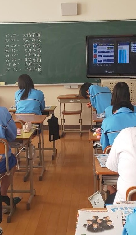 会議室から高校の説明を配信