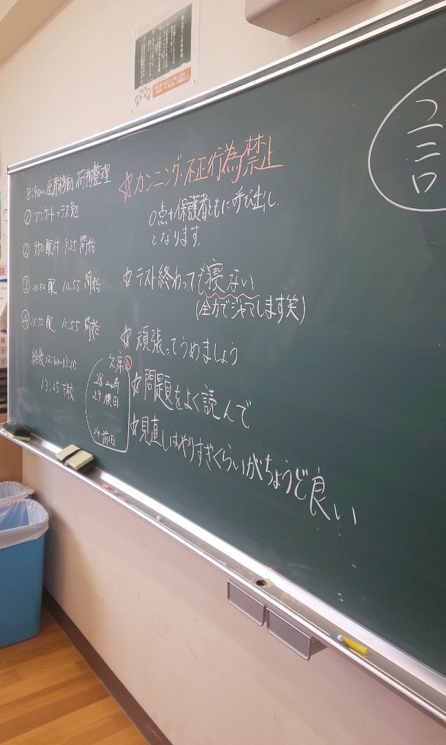 時々、テストを終えて机に伏せている人を見ます。早くできたから、分からないからなど、理由はいろいろあるとは思いますが、どんな理由でも入試ならアウトです。仮に、体調が悪いのなら、手を挙げてきちんと伝えることが求められます。今のうちに、見直しも含め、テストは時間いっぱいまで取り組む習慣をつけておきましょう。