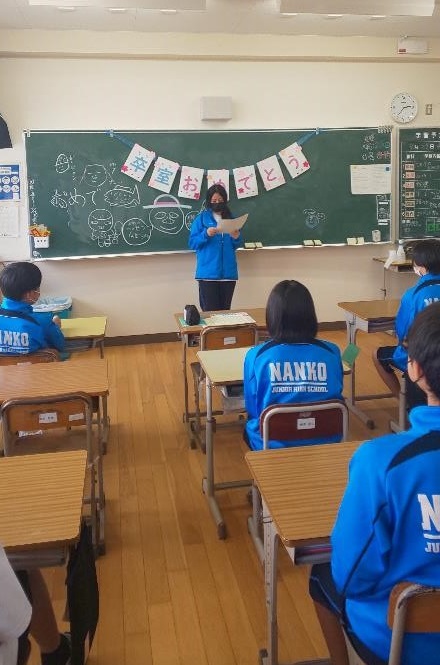 卒室式では、みんなの前で、日本に来てからの不安な気持ちや、日本の暮らしの良いところ、将来カウンセラーになって困っている人の話を聞いて助けたいという夢を語ってくれました。そして最後に「高校に行きたいから、これからも勉強頑張ります」と締めくくってくれました。