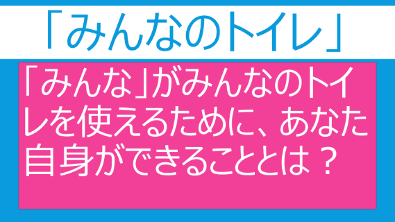 さて、学校だよりにも書かせていただいたのですが、いろんなことが「当たり前」にできることって、本当に大切だと思います。でも、南郊中学校には、本来は「当たり前」であるべきなのに、そうなっていないことがあります。それは「みんなのトイレが閉まっている」事です。そのことについて、今日の6限目に、人権サークル「南郊レインボーズ」の皆さんが、全校に発信をしてくれました。今は、みんなのトイレがみんなのものになっていません。本当に使いたい人がいつでも使えるようにするために、「自分にできること」を1人ひとりが考えていきませんか?