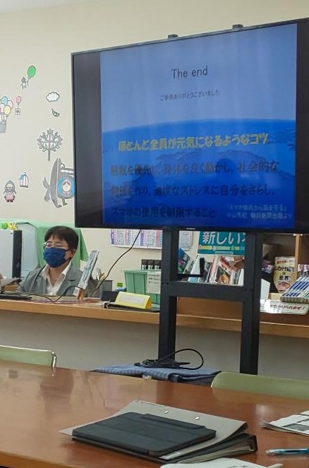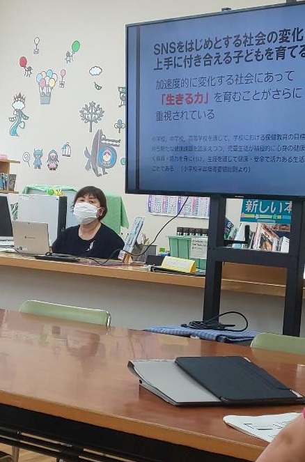 その1つとして、1学期末の学校だよりでお知らせした、ネット世界の現実を変えていく事を目指した活動をしていくために、お盆休み前には、姫路大学の日潟教授と鈴鹿大学の上田教授をお招きして、ネット依存の観点から教職員の学習を行いました。また、今日は、大学の研究と連携して、行う授業の打合せを行いました。