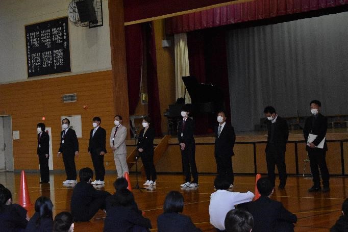 始業式では、校長、生徒指導担当、人権教育担当から、