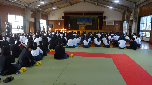 新年明けましておめでとうございます。1月8日から3学期が始まり、早速始業式を行いました。式の冒頭で全校生徒に「明けましておめでとうございます」と挨拶しましたが、栃木県のいじめ動画拡散をはじめ、この冬休み中にいろいろあった学校は「おめでとうございます」とはならないでしょう。久しぶりの学校ですが、普通にスタートを切ることができるのは、生徒たちが冬休み中も安全に過ごし、普通に登校してくれたおかげです。近年、学校の価値観も随分変わり、登校するのが当たり前ではなくなってきた時代に、普通に始まるありがたさを噛みしめつつ、登校中の生徒には「おはよう」に加えて「よう来たなぁ」と声をかけました。これからもこの当たり前を大切にしていこうと思います。今年もよろしくお願いいたします。