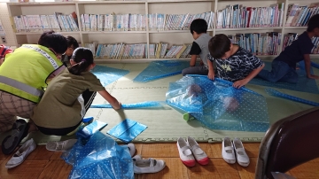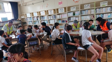 9月27日に防災教室が行われました。みえ防災コーディネーターの方々に来ていただき、災害時には、どうしたらいいのか、何が必要かをカードを使って考えました。その後、低学年は簡易ポンチョ、中学年は簡易ナップサック、高学年は簡易三角筋を教えてもらいながらつくりました。 いきなり地震が来て、家で一人だったら・・・など子供たちは自分のことに置き換えてしっかり考えることができました。