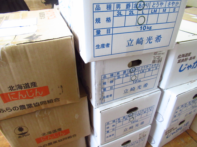 頂いたじゃがいも、にんじん、玉ねぎは早速子どもたちに配布しました。