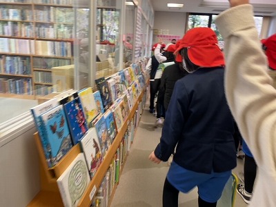 つぎに図書館の見学をしました。子ども向けの本から大人向けの本まで、たくさんの本が館内にはありました。普段は見ることのできない書庫の中もみせてもらいました。館内に置くことができない本がまだまだたくさんあるのですね。