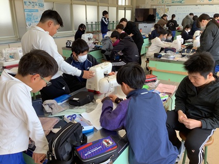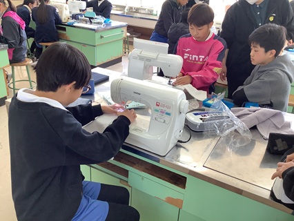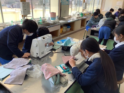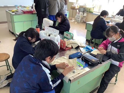 3月12日(木)6年生が家庭科で雑巾を作っていました。自分用と新1年生用も作ってくれました。手縫いをしたものとミシン縫いしたものと両方の縫い方で作っていました。友だちと助け合っている姿も見られ、すてきでした。新1年生の分まで作ってくれてありがとう。