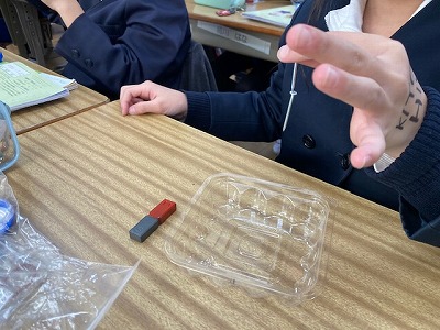 今日は、磁石でくっついていたクギは、磁石から離れていても磁石のような働きをするのか、学習しました。