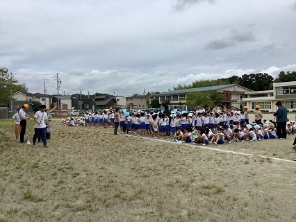 9月4日(木)授業中に地震が発生したという想定で避難訓練を行いました。今回の避難訓練は、事前に訓練をする日時は予告せずに行ないました。緊急放送を合図に、机の下にもぐり、揺れがおさまったという放送で、運動場へ避難しました。落ち着いて避難することができていました。自分の命を守るために、どのように行動したらよいかを咄嗟に判断しなければいけません。そのためにも、日頃の訓練が大切だと思います。地震は、登下校中など、大人がいないときに起こるかもしれません。そんな時、どうしたらよいかも、また、ご家庭でも話し合ってみてください。