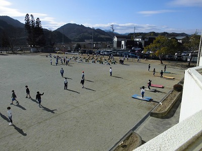 連日、朝の冷え込みで、運動場の一部が凍るという現象が起こっています。写真は25日(水)のものです。日があがるとともに、凍ったところが溶け、ぬかるんできます。 そこに足を踏み込み、地面がぐちゃぐちゃになった様子が見て取れると思います。 ぐちゃぐちゃに荒れた部分とその周辺の太陽が反射している部分が、凍るところです。その他の場所はノープロブレム! その違いは何かというと、塩化カルシウムの効果です。凍結防止の散布効果がてきめんに表れています! 散布してくれたスポ少野球:高岡コンドルズさんに感謝です!(実は、この凍る部分ですが、先日のドクターヘリが下りた場所なんです。推測ですが、風圧で砂とともに塩カルも吹き飛んでしまったものと思われます。次回の購入で再度散布してみようと思います。) こちらは、元気に遊ぶ子どもたちの姿です。(20分休みと昼休みで、低学年と高学年を交代制にして運動場を使用しています。密を避ける工夫です!) |
