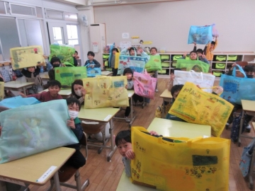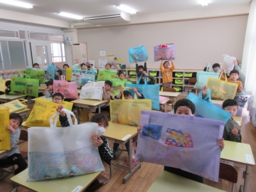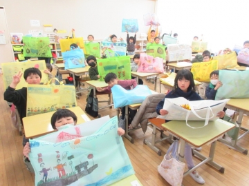 さくひんバッグに、思い出を しまいました。おうちへ もってかえります。