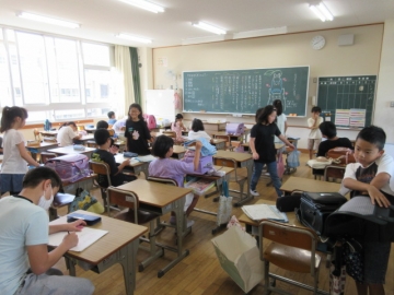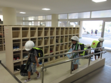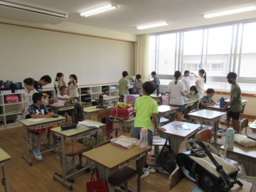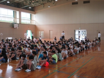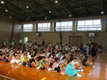 体育館に集合です。みんな静かに行動できて、とても立派な態度です。