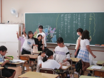 【学校生活についてのお話】 生徒指導の先生から、学校でみんなが楽しく過ごすためのルールなどについてお話がありました。