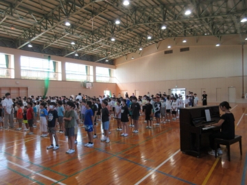 今から終業式です。まず、校歌を歌います。