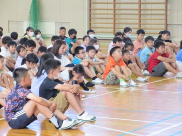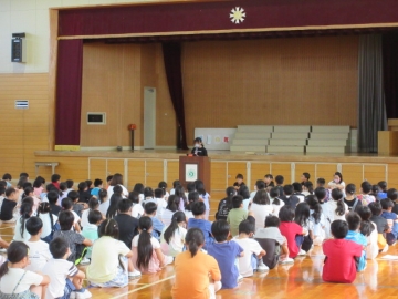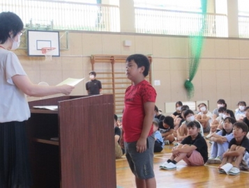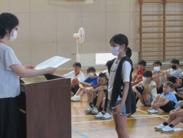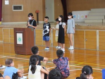「校長先生のお話」のあと、6・4・2年生の代表の人が、「1学期の思い出」の作文を発表しました。