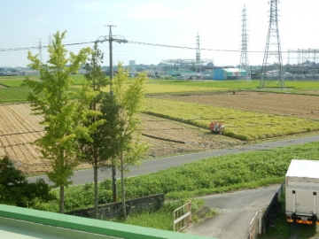 夏休みも終わりに近づき、校舎の窓から見える田んぼでも、稲刈りが進められています。