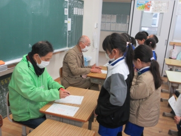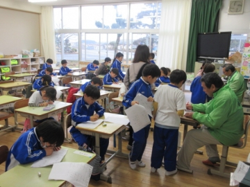 いつものように、「見守りほめ隊」の方々が、プリントの丸つけに来てくださっています。
