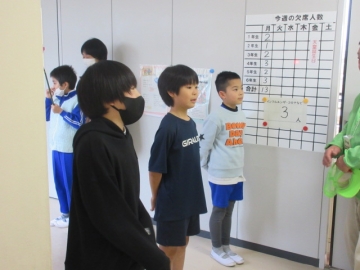 代表の児童が、「見守りほめ隊」さんを迎えに来てくれました。