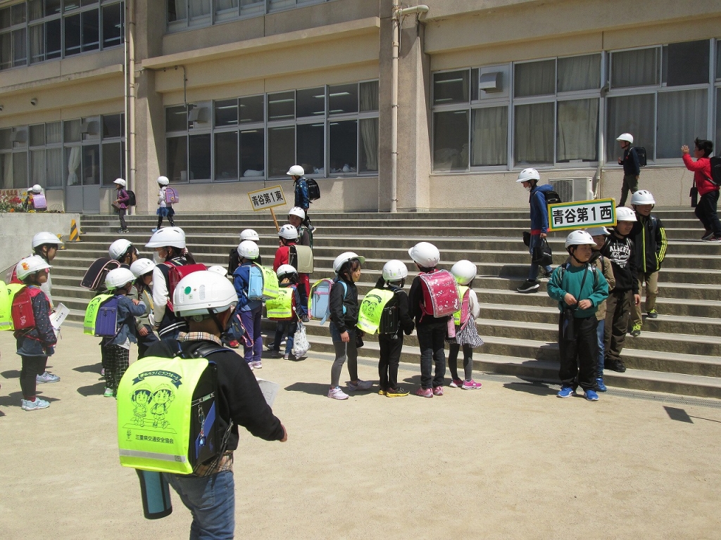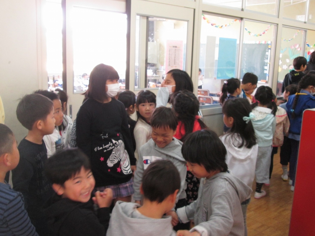 地区別の集会と一斉下校1年生が入学したこの時期は、登校・下校時の交通安全がより一層求められます。安全意識を高めるため、集会と一斉下校を行いました。集会では、6年生が1年生の手を引いて地区ごとの集会に案内し、安全について話し合いました。下校も地区ごとにしました。見守り隊の皆さんも、付き添いのために駆けつけてくださいました。
