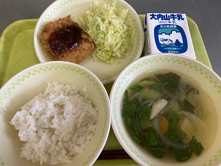 2月20日(金)イカフライ、添えキャベツ、青梗菜のスープ