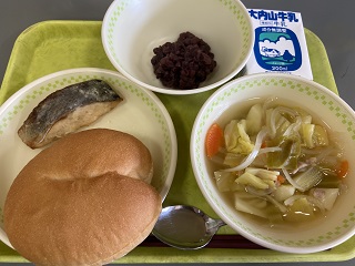 2月24日(火)セルフ餡パン、鮭のムニエル、野菜のスープ