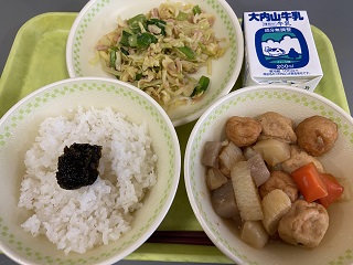 2月12日(木)鶏牛蒡、玉葱の味噌汁、