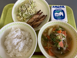 2月26日(木)公魚の唐揚げ、美杉みその味噌汁、