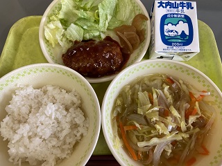 2月27日(金)おから入りハンバーグ、添えレタス、