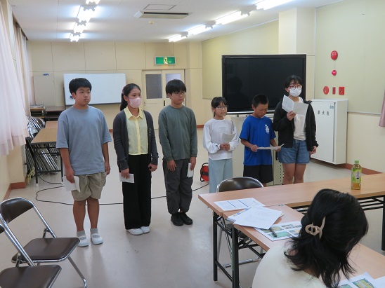 地域のみなさんに支えていただいていることへの感謝の気持ちや 自分たちの学校生活を振り返って感じていること これからがんばりたいと思っていることを 聞いていただきました。