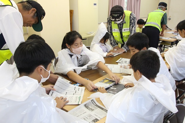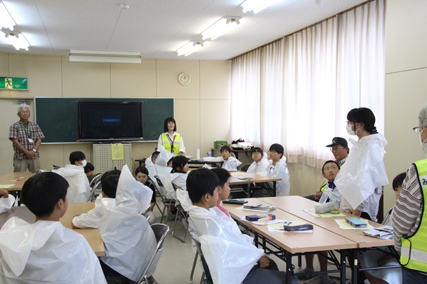 今日は 3・4限目にミーティングルームで全学年の防災教室がありました。