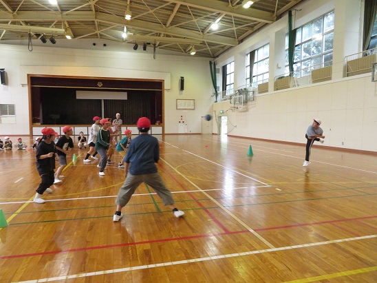 大きい学年の子は、聞き手とは逆の手で投げるルールでした。