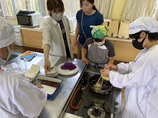最後は 全部混ぜて 焼きそば粉を入れて みんなでおいしく