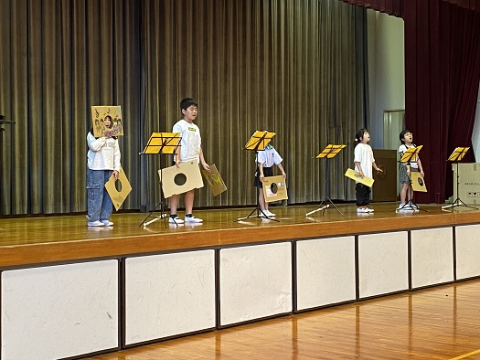 次は 3・4年生の「ドレミの歌」は、図工の時間に作った絵をもって
