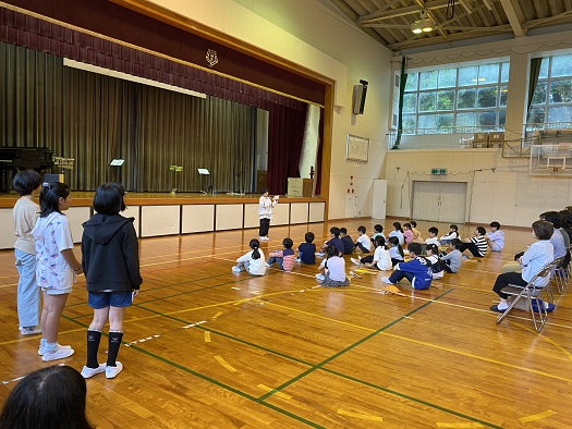 まずは 1・2年生の「子犬のビンゴ」と「さんぽ」から 始まりました。