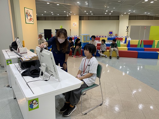 こちらでは 「歩行環境シュミレーター」を体験しています。