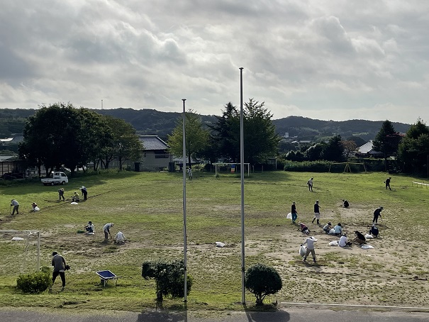 今日は、榊原出張所と榊原公民館から、運動場の除草に来ていただきました。