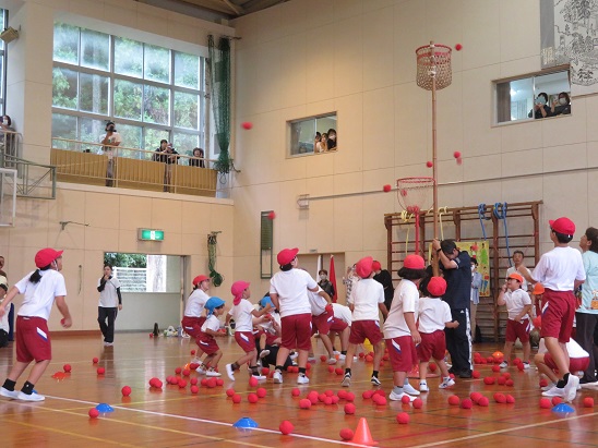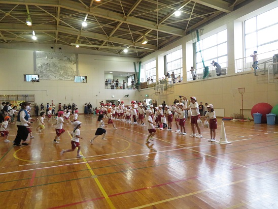 体育館でも  子どもたちは   元気いっぱいでした。