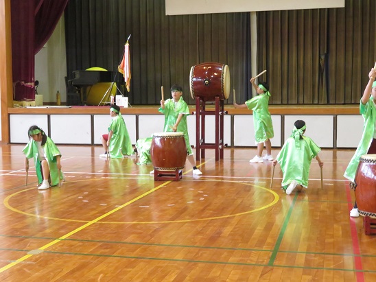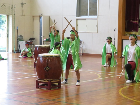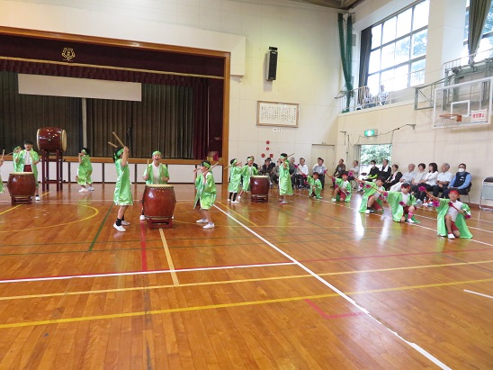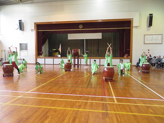 力強いかけ声、太鼓の音が  体育館に 響き渡りました。