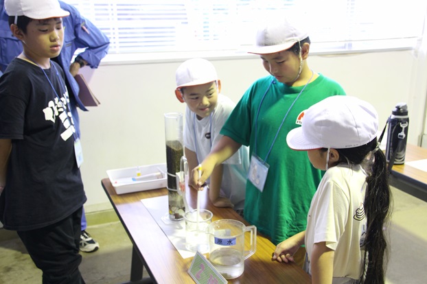 飲み水ができるまでの工程を 簡単な実験で体験しました。