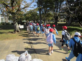午前9時前に古川公園に向けて学校を出発しました。