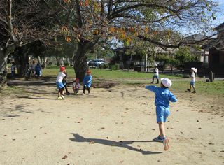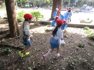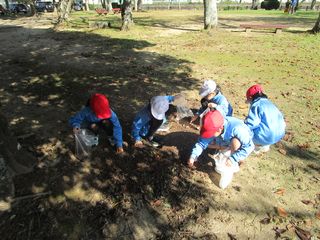 古川公園では、ドングリやマツボックリを探したり、遊具で遊んだりしました。