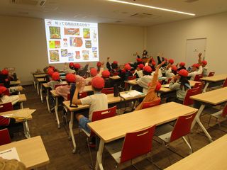 あじのもとが製造されている様子を見学したり、あじのもとの原料となるかつお節について教えてもらいました。