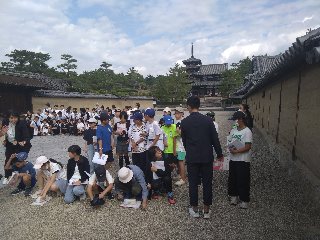 〇出発式を終え、午前7時半、法隆寺に向けて学校を出発しました。