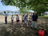 また、三重県測量設計業協会の方には、自分の歩数で10mを測るのと、測量機器で10mを測った時の差を比べて、最新機器のすごさや、測量の正確さについて教えていただきました。