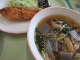 【さけフライ そえキャベツ 麦飯 五目汁 牛乳】