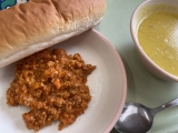 【スロッピージョーサンド かぼちゃのポタージュ 牛乳】