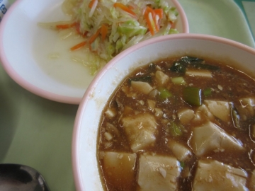【麻婆豆腐 バンサンスー 麦飯 牛乳】