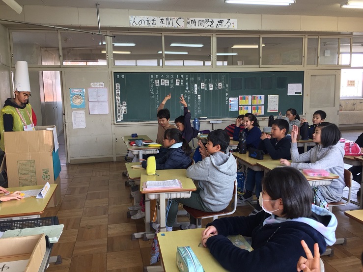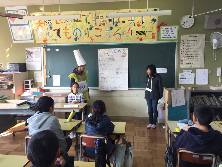 4年2組へは、台湾チーム④が発表しに行きました。明日は、4年1組へ発表しに行きます。