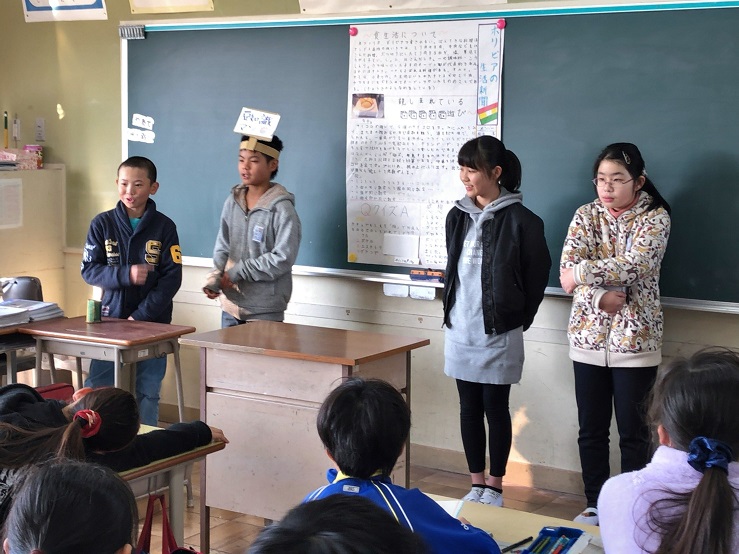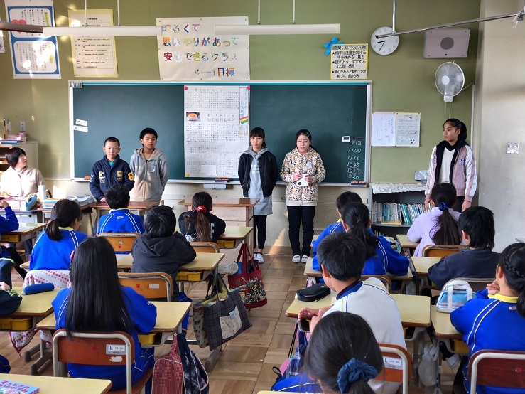 12/11(月)の朝の会を利用して4年生に発表しました。